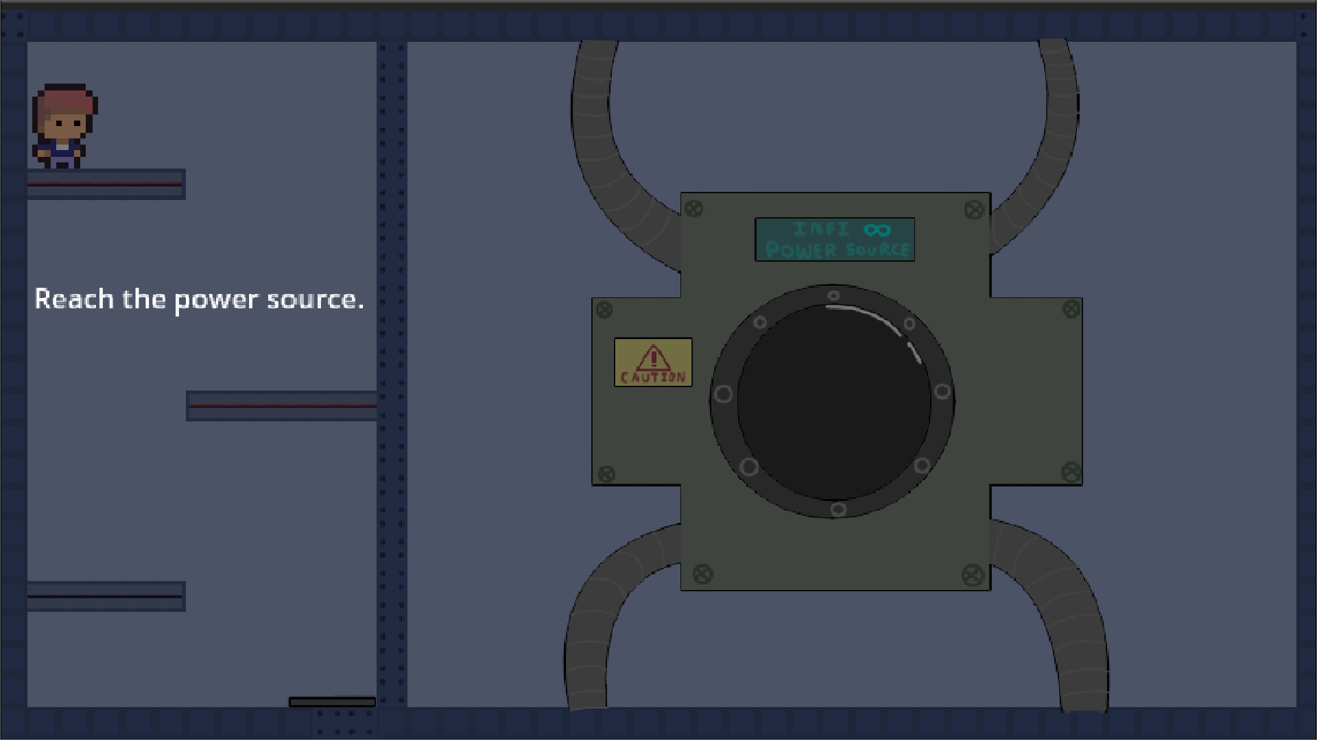 You navigate through obstacles to reach the power source and fix it.
